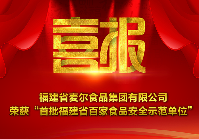 喜報——麥爾食品集團有限公司榮獲:首批福建省“百家”食品安全示范單位